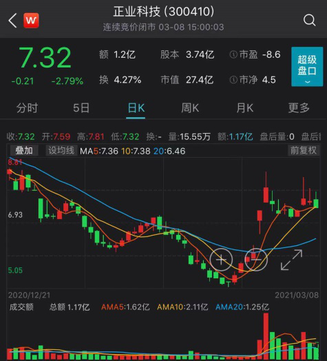 其中,正业科技以预计582.67%的净利润上限增幅,暂列A股2021年一季度业绩“增长王”。业绩预告发布次日(2月23日),公司股价涨停,涨幅达到20.03%。