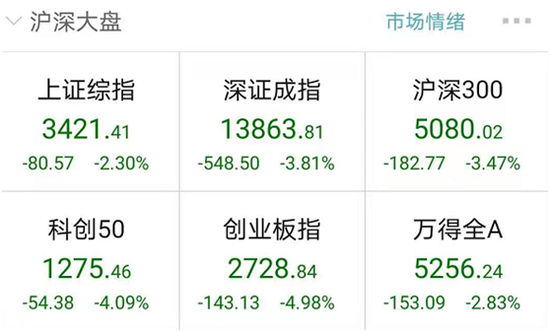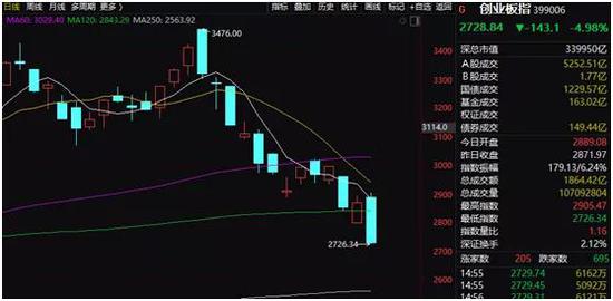 深证成指、中小板指、创业板指跌幅更大,其中创业板指下跌4.98%,同样创下接近8个月最大单日跌幅。