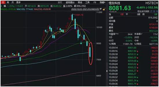在A股众多指数跌穿半年线之前,今天上午港股恒生科技指数率先跌破半年线,多只港股科技股和新经济股大跌。截至今天收盘,恒生科技指数暴跌6.40%。