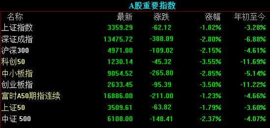 截至收盘,沪指跌1.82%,深成指跌2.8%,创业板指跌3.5%,抹去日内涨幅。