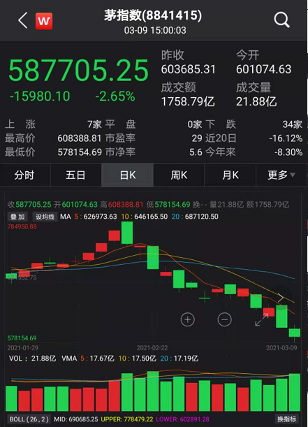茅指数近几年持续上行,整体涨幅较大,获利盘也较多,多个“茅”品种平均估值溢价得到充分、甚至是过分的反映,其估值难以避免地面临修正压力,老的“抱团”品种实际上在2020年下半年就陆续有松动的迹象,但其峰值在牛年开盘后。