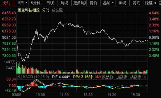 另外,3月9日,安信策略陈果发布市场点评称,A股从昨天到今天上午的调整,大概率不再是由美债利率担心驱动,而变为绝对收益止损操作及负反馈担忧主导,这构成调整期第一阶段的底部,在各种因素影响下,交易性层面集中的急性压力已经释缓,虽然不排除有反复,但我们认为基本可以判断调整期第一阶段已经结束。