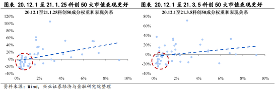 分阶段来看,科创50指数汇总中大权重公司表现均明显优于排名靠后的公司。