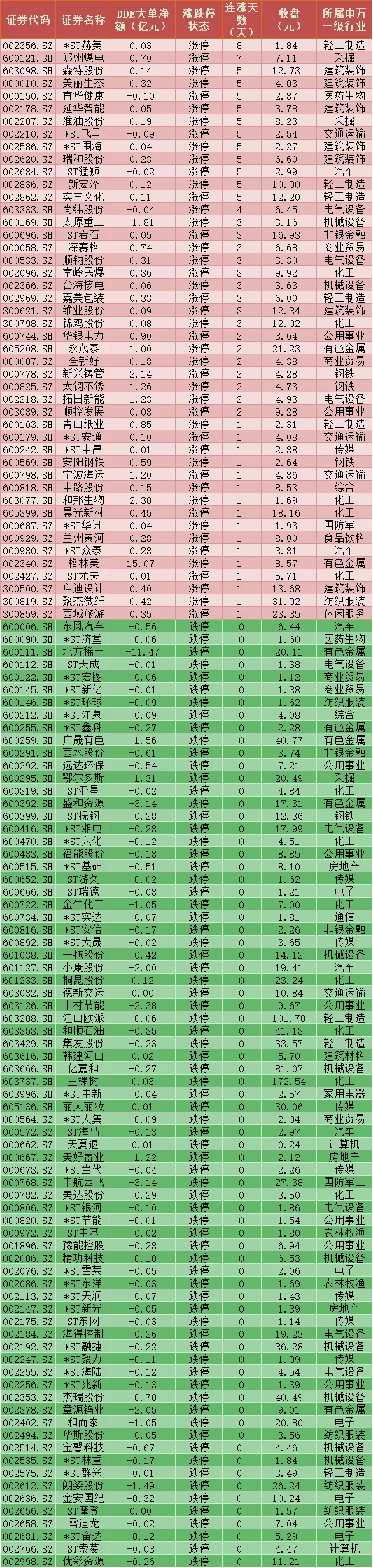 三、周二(3月9日)涨跌停股