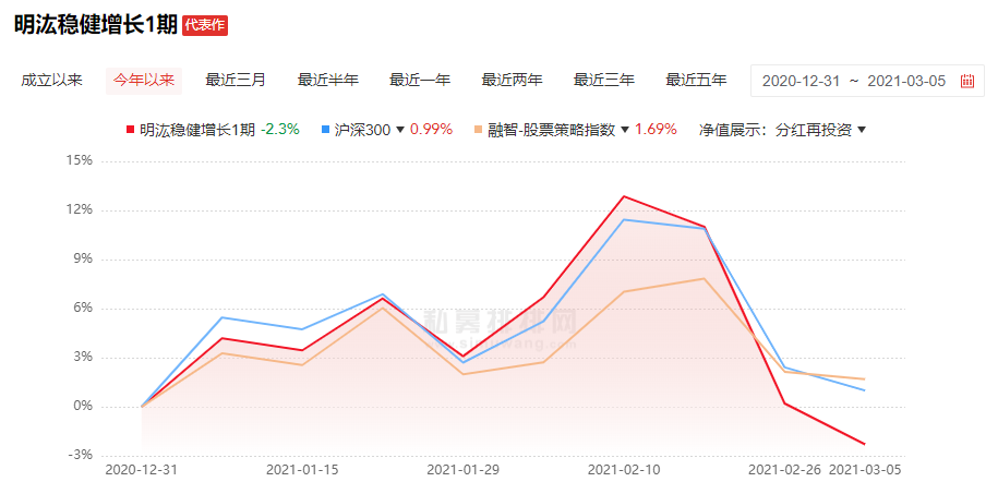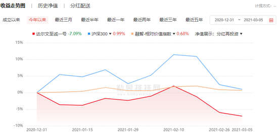 但春节开市之后,A股开始大幅波动,上述产品迅速收窄。至3月5日,年内收益陡降为-2.3%。