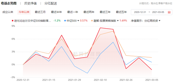 管理规模近百亿的进化论资产,今年2月10日旗下中证500增强产品一度跑赢业绩基准6个点,但到了3月5日,该产品出现9%的回撤。