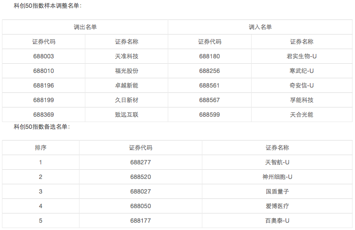 今年2月26日,上海证券交易所(下称“上交所”)公告称,3月15日起,对科创50等指数的样本进行调整,5只股票被调出,5只股票被调入,另有5只股票备选。