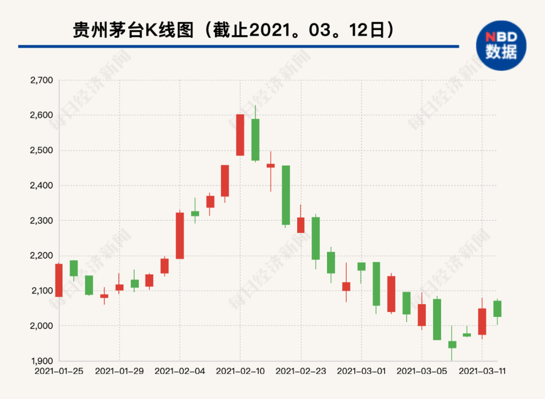 市场方面,近期,A股市场上以贵州茅台为代表的核心资产迎来连续调整。2月18日,贵州茅台股价创下2627.88元/股新高,随后开始调整,截至3月12日收盘,报2026元/股,累计回调幅度达22.11%。那么,连续调整后的茅台还“香”吗?