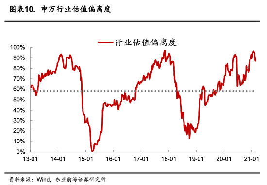 从市场交易情绪来看,当前尚未处于过热水平。从历史上看,历轮牛市后期都会出现一轮低价股行情,在场外边际投资者涌入的背景下,低价股往往能取得超额收益,在2007年牛市时低价股占比降至2%以下,而在2009年牛市时,低价股占比降至2.3%,2015年牛市,低价股占比降至0%。当前来看仍有20%以上个股的股价处于5元以下水平,这也反映了当前的场外资金情绪仍然处于相对理性水平。