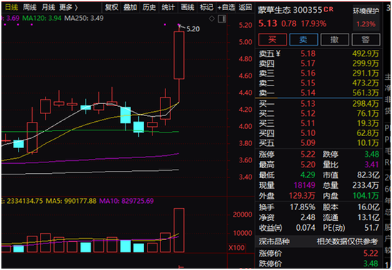 蒙草生态暴涨近18%。