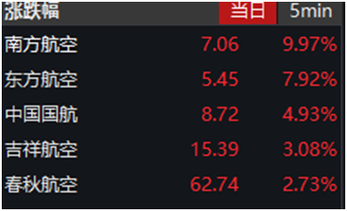 几大航空股暴涨。南方航空涨停,东方航空上涨7.92%。其他航空股有不同程度上涨。