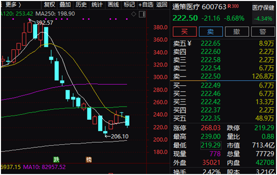 “牙茅”通策医疗大跌8.68%。