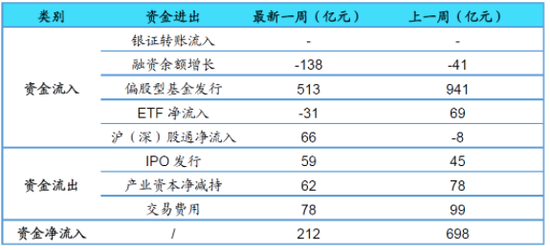 最新一周资金净流入212亿元,而前一周净流入698亿元(皆未统计银证转账数据)。