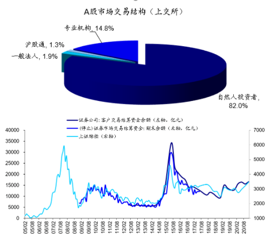 投保基金公司的银证转账数据只公布到2017年6月,之后的数据用证券业协会的证券公司客户交易结算资金来统计,20Q4余额为16600亿元,较20Q3上升1000亿元。