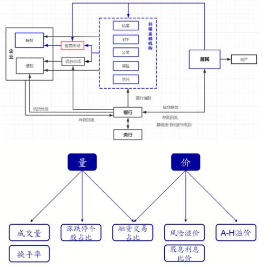 短期情绪指标处于05年以来中位,长期情绪指标处于05年以来中高位:短期情绪指标主要看换手率和融资交易占比,最近一周换手率(年化)为323%,较前一周的318%上升。2005年以来换手率的高点、低点、均值分别为1719%、87%、354%,当前处在历史上由低到高65%的分位;最近一周融资交易占比为8.04%,较前一周的8.48%下降。2013年以来融资交易占比高点、低点、均值分别为17.95%、4.07%、9.48%,当前处在历史上由低到高26%的分位。长期情绪指标主要看大类资产比价,一看价格对比,最近一周A股风险溢价(全部A股PE倒数减十年期国债收益率)为1.2%,较前一周的1.09%上升。2005年以来风险溢价的高点、低点、均值分别为4.78%、-2.66%、1.73%,当前处在历史上由高到低65%的分位;二看收益率对比,最近一周沪深300股息率/十年期国债收益率为0.6,较前一周的0.59上升。2005年以来数值的高点、低点、均值分别为1.03、0.08、0.62,当前处在历史上由高到低60%的分位。