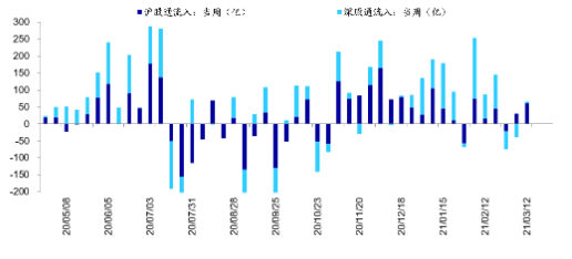 最近一周沪港通和深港通资金流入66亿元,而前一周流出8亿元。