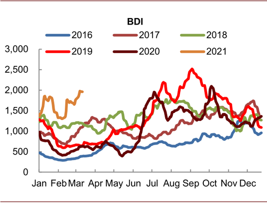 上一期强出口和美国财政刺激相关的电话会我们有重点提示集运和干散货板块以及港口修复的机会,在这里我们结合最新的数据和运价做一个更新。