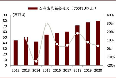 看好内贸集运:需求受益于内循环和散改集,格局改善和集中度的提升在需求向上时带来运价向上弹性。需求侧看,根据中国港口协会,3月上旬八大枢纽港口内贸集装箱业务增势强劲,吞吐量同比增长16.7%,表明在内需带动下,国内生产物流恢复更快。从供给端看, 2020年沿海省际运输集装箱船运力同比增长3.4%,增速明显放慢。受益于需求侧稳步增长而运力供给维持平稳,我们预计内贸集装箱运价存在向上超预期可能。