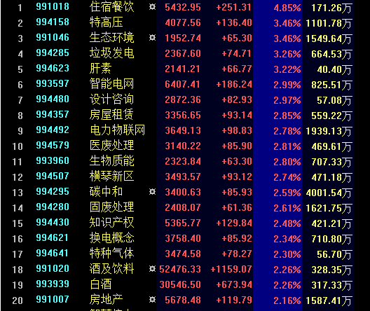 盘面上,住宿餐饮、特高压、垃圾发电、碳中和等题材概念股表现亮眼,权重板块中房地产涨幅居前。