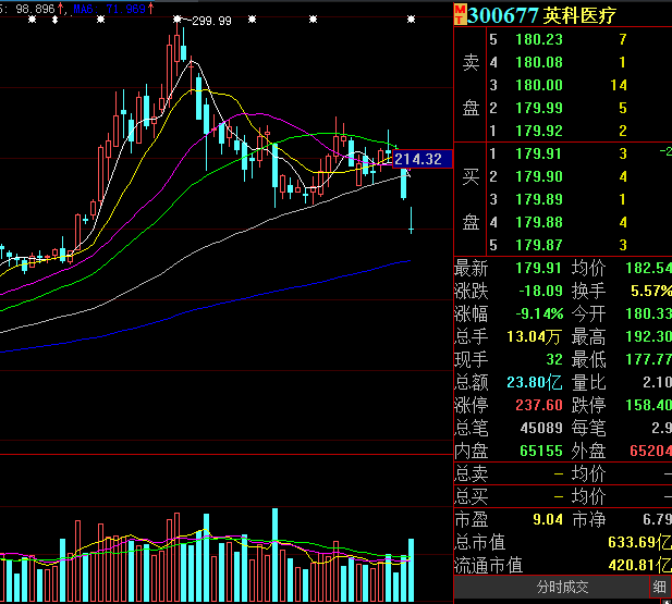 ,昨日晚间释放业绩暴增38倍大利好,还有高送转,然而昨日大跌10%。截至今日收盘,其股价收跌8.59%,报181元,最新市值637.53亿元。