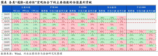 我们用M2和PPI两个指标的同比增速定义较为典型宏观环境。PPI为正、M2为负的宏观组合为通胀高企、货币紧缩环境;PPI为负、M2为正的宏观组合为经济通缩、货币宽松环境。此外,CPI同比增速指标作为参考。