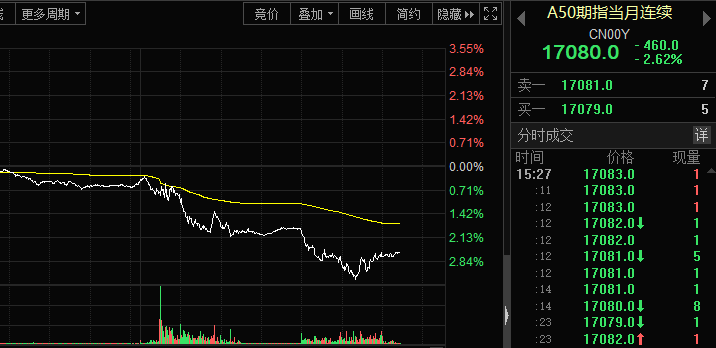 A50遭遇惨烈做空,全天最大跌幅超过3%。