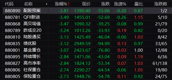 从杀跌结构来看,盘面虽然没有太多跌停的个股,但整体上是涨少跌多。其中,蓝筹股领跌大市,机构重仓股跌幅尤其较大。