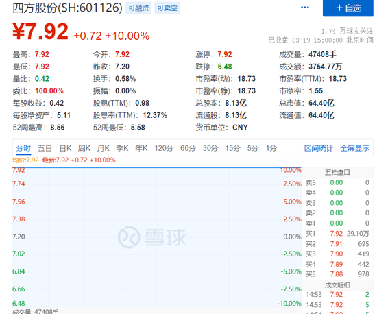 今日开盘,四方股份直接封涨停板,截止收盘仍有29万手封单!网友直呼:太豪气了!你敢分,我们就敢拉涨停!