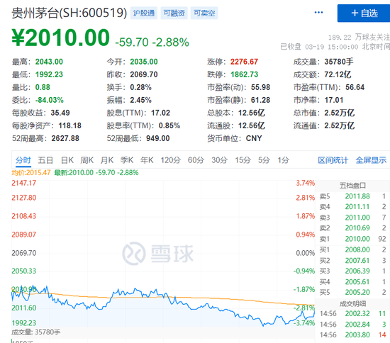 昨日反弹的白酒股再度下挫,贵州茅台一度跌超3%