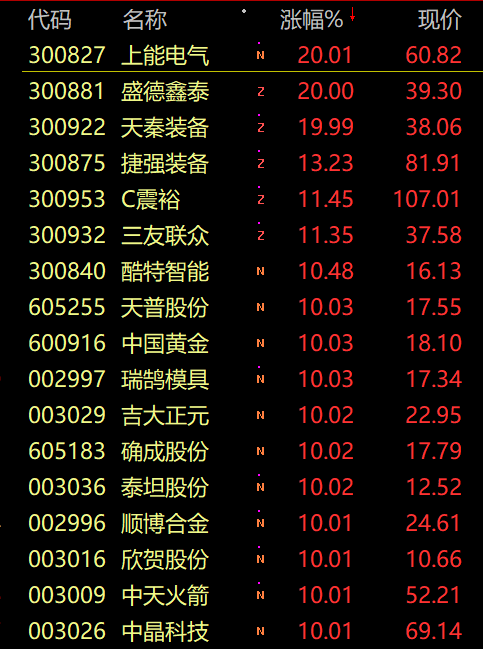 军工板块拉升走高,次新股表现较为活跃,上能电气、盛德鑫泰等逾20股涨停。