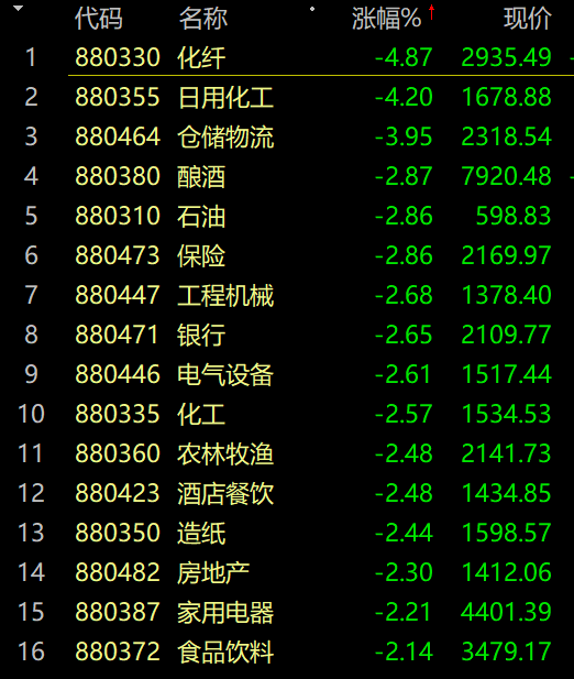 盘面上看,石油、化纤、保险、银行等板块跌幅居前。旅游、煤炭、酿酒、券商、化工、地产等板块均走弱;