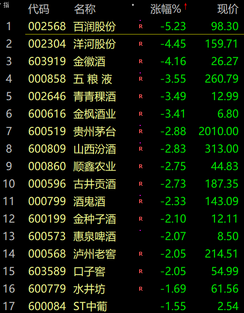 洋河股份跌超4%、五粮液、山西汾酒纷纷走低