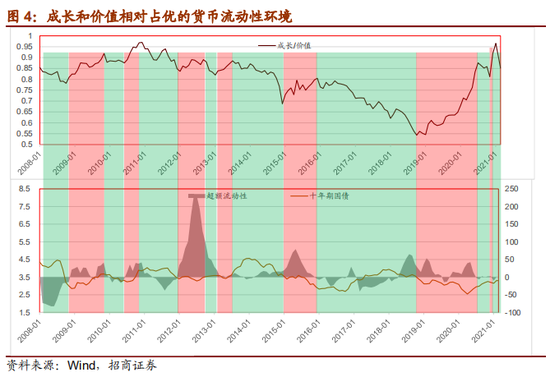 因此,从历史来看,当我们定义的“超额流动性”为正,且十年期国债收益率在3.5%以下,成长和高估值占优,反之则是价值占优。