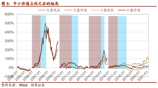 而对比这四段小盘价值占优的,出现的环境都非常接近: