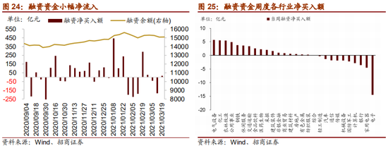 本周(3月15日~3月19日)北上资金净流入,合计净流入87亿元,不过在最后一个交易日有所流出。行业偏好上,北上资金净买入规模较高的为电气设备、机械、医药等,分别净买入30.7亿元、29.8亿元、27.7亿元,其他净买入较多的包括家电、电子等;净卖出规模居前的包括食品饮料、非银金融等。如果从大类行业来看,本周北上资金各大类板块的相对净买入额排序为科技>周期金融>消费医药。