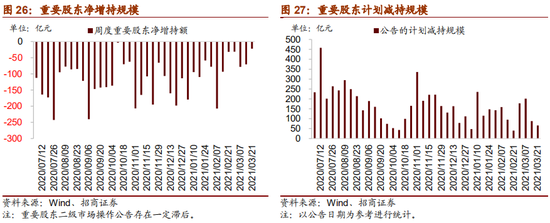 从资金需求来看,重要股东净减持规模和计划减持规模均继续收窄。本周重要股东二级市场增持37.8亿元,减持60亿元,净减持22亿元,净减持规模继续下降。其中,净减持规模较高的行业包括化工、机械设备等;净增持的行业主要包括电气设备、农林牧渔等。本周公告的计划减持规模为66.3亿元,较前期下降。