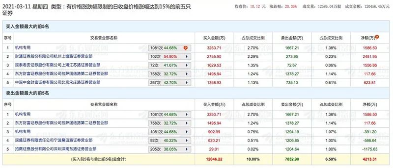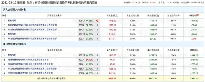 如国泰君安上海江苏路营业部3月11日现身买三席位,买入3月12日便净卖出1775万元,短线交易的操作风格明显。
