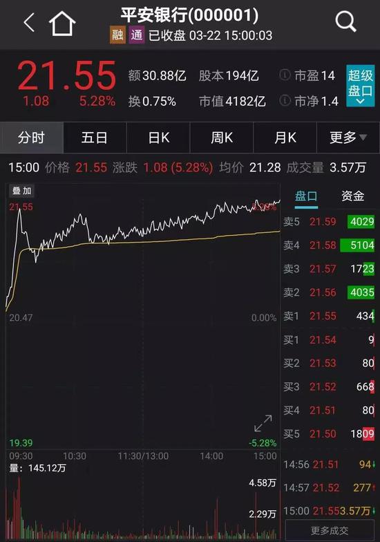 从板块看,大金融领域的银行、券商板块再度发力,部分成分股迎大涨。Wind数据显示,截至收盘,银行指数涨2.11%。平安银行大涨5.28%,其总市值已逼近4200亿元。公司年报显示,其2020年营业收入合计1535.42亿元,同比增长11.3%;实现净利润289.28亿元,同比增长2.6%。