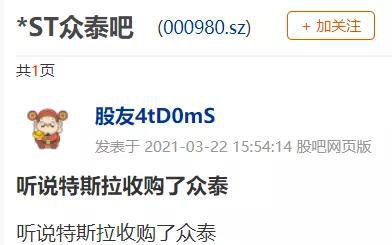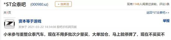 股吧里,投资者关于*ST众泰的重整方议论纷纷,小米、特斯拉都被搬了出来。