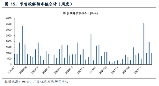限售股解禁:上周限售股解禁154亿元,前一周限售股解禁241亿元。预计本周限售股解禁282亿元。