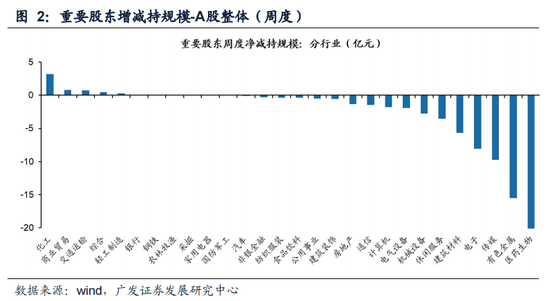 (2)重要股东增减持(A股整体): 本周重要股东减持14亿元,前一周净减持约70亿元。本周增持规模前三的行业为化工、商业贸易、交通运输,减持规模前五的行业为医药生物、有色金属、传媒、电子、建筑材料。