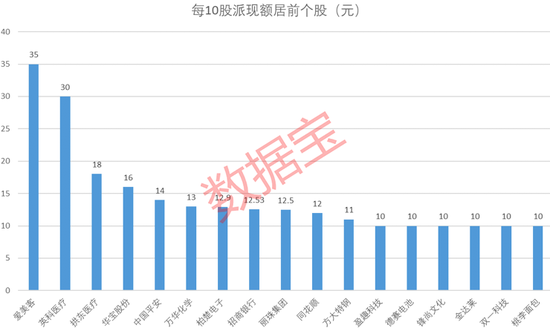 已披露分红派现计划的284只股票中,48股的每10股派现不低于5元,其中每10股派现超10元的有11只股票,其中爱美客、英科医疗的每10股派现均不低于30元。