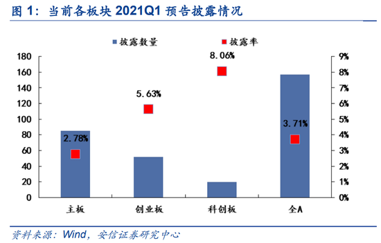 2021年一季报A股大概率呈现恢复性高增长,建议关注一季报预告高增长的优质公司。当前2021年一季报业绩预告已经开始陆续披露,将于4月15日前披露完毕。截止3月28日中午12点,2021年一季报预告披露率为3.71%,主板、创业板和科创板披露率分别为2.78%,5.63%和8.06%;2020年年度报告披露率为34.75%。从目前披露的年报数据来看,2020年全A(非金融石油石化)增速(含业绩预告和业绩快报,合并披露率约为74%)约为28%,预计2020年四季度A股基本面将进一步抬升,2020年有机会实现盈利正增长。从目前已披露一季报业绩预告来看,呈现普遍高增长的态势,我们预计2021年A股一季报大概率将呈现恢复性高增长,2021年全A盈利增长回升至15%左右,剔除金融后回升至20%左右,趋势受基数效应影响呈现前高后低的特征(详见《从复苏牛迈向高质牛》)。由于目前一季报业绩预告整体披露率较低,建议优先关注一季报业绩预告高增长公司。