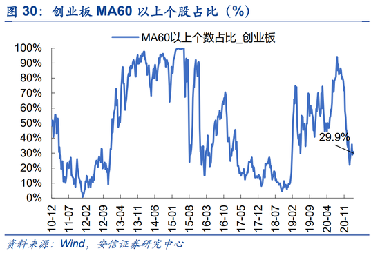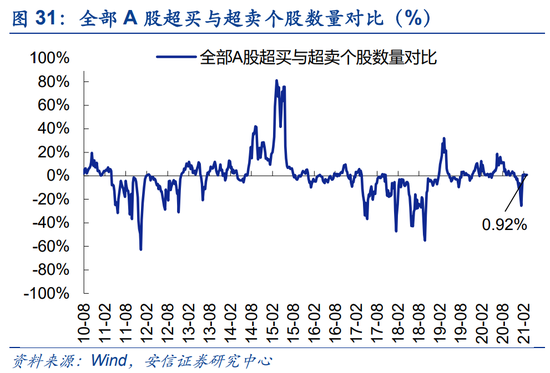 本周指数维持震荡,权重股有所企稳。当前市场强势个股数量占比40.3%,较上周上升0.8个百分点;超买个股与超卖个股之差占比0.92%,较前周上升0.1个百分点。创业板来看,强势个股数量占比29.9%,较上周下降1.0个百分点;超买个股与超卖个股之差占比-0.60%,较前周上升1.0个百分点。