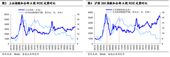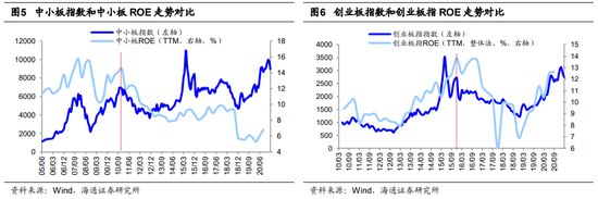 回顾过去三轮牛市高点均对应着业绩高点,具体而言:2005/06-2007/10牛市期间,上证指数和沪深300高点在07年10月,全部A股ROE高点在07Q4。2008/10-2010/11牛市期间,上证指数和沪深300在 09年8月达到高点,此后直到09年8月-10年11月持续高位震荡,中小板继续上行,高点在10年11月,ROE高点在10Q4。2012/12-2015/06牛市期间,创业板开始结构性牛市,创业板指盈利高点出现在15Q4,而由于清查配资等去杠杆因素,创业板指在15年6月出现高点,在业绩向好的催化下,15Q4创业板指反弹幅度显著。