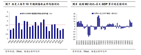今年宏观流动性没18年紧。2018年去杠杆背景下,宏观流动性明显收紧,全年M2同比为8.1%,名义GDP同比为8.9%,两者差值为-0.8个百分点,当时货币供应量跟不上名义经济增长速度。2018年十年期国债收率全年均值为3.62%,而2017年为3.58%,均超过2002年以来的均值3.53%。今年宏观流动性较去年边际趋紧,但只是温和的状态。2021年3月24日中国人民银行货币政策委员会召开2021年第一季度例会,其提到“稳健的货币政策要灵活精准、合理适度,把握好政策时度效,保持流动性合理充裕,保持货币供应量和社会融资规模增速同名义经济增速基本匹配,保持宏观杠杆率基本稳定”。我们预计2021年全年十年期国债收益率均值3.1%~3.2%,而2019年为2.95%,均低于2002年以来的均值3.53%。