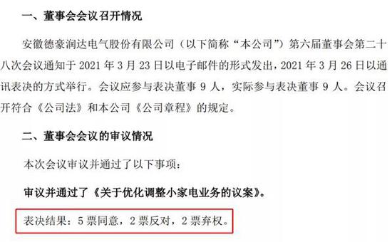 值得注意的是,该议案的通过十分勉强,参与表决董事9人中仅获得5票同意。持反对意见的股东沈悦惺表示,一、公司召开本次董事会违反证监会、深交所规则,应属违法无效;二、本次会议涉及消减公司现有业务收入规模约70%,已达到股东大会审议标准,经董事会审议后,应提交股东大会审议,未见本次议案中有相关安排。