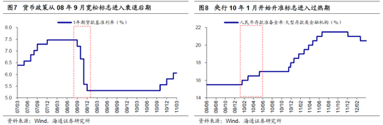 今年是弱版07年、强版10年。以去年底社融存量和M2增速开始见顶回落为标志,本轮经济周期来到过热阶段,回看历史,04年以来这一阶段出现过三次,分别在07、10和16-17年。从历史对比的角度出发,我们认为今年类似弱版的07年,强版的10年。具体来看,今年在基本面上弱于07年:07年经济过热期间虽然宏观流动性收紧,但是企业微观盈利持续改善,全年A股净利累计同比增速约为50%,今年我们预计全年增速达15-20%,低于07年。但与10年的过热期相比,目前的政策收紧力度相对较小:10年1月至11年3月的过热期间央行接连九次上调存款准备金率,累计上调了4个百分点。而目前宏观流动性只是温和收紧,2月26日中央政治局会议强调保持宏观政策连续性、稳定性、可持续性,3月5日的政府工作报告中也指出“稳健的货币政策要灵活精准、合理适度”,这意味着虽然在经济恢复至正常水平后国内宏观政策会调整,但不会急转弯,因此今年政策在收紧力度上不及10年。