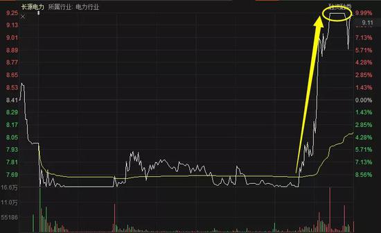 不过,持有长源电力的4.4万名股东的惊喜只维持了11分钟,14:53后股价打开涨停板,涨幅快速收缩至不及6%。最后虽然没有重新封住涨停板,不过总算收涨9.75%,换手率高达26.58%,但日K线图看上去还不错。