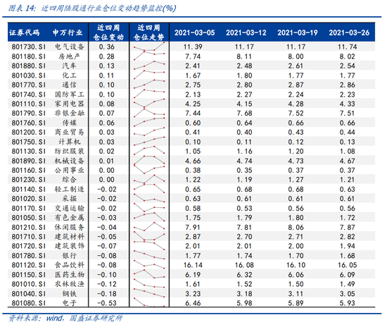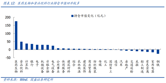 医药生物仓位提升居首,钢铁仓位回落较多。从持股市值变动角度看,上周医药生物、食品饮料和计算机行业持股市值大幅提升,分别增加175.1亿元、48.24亿元和36.67亿元;同时钢铁、家用电器和有色金属行业持股市值回落较多,分别减少24.57亿元、15.3亿元和13.08亿元。从持股仓位变动看,上周医药生物、计算机和机械设备行业仓位提升较多,分别提升0.57%、0.11%和0.06%;而家用电器、钢铁和有色金属行业仓位回落较多,仓位分别下降0.19%、0.12%和0.08%。